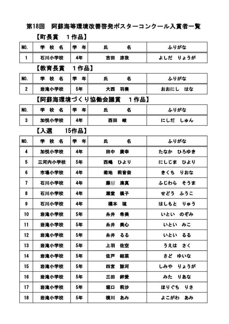 第18回阿蘇海等環境改善啓発ポスターコンクール