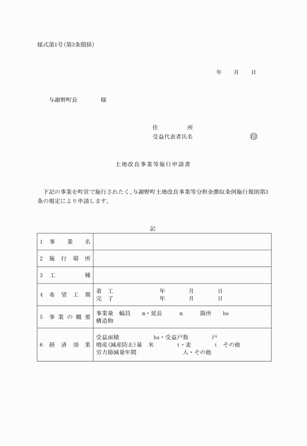 ○与謝野町土地改良事業等分担金徴収条例施行規則